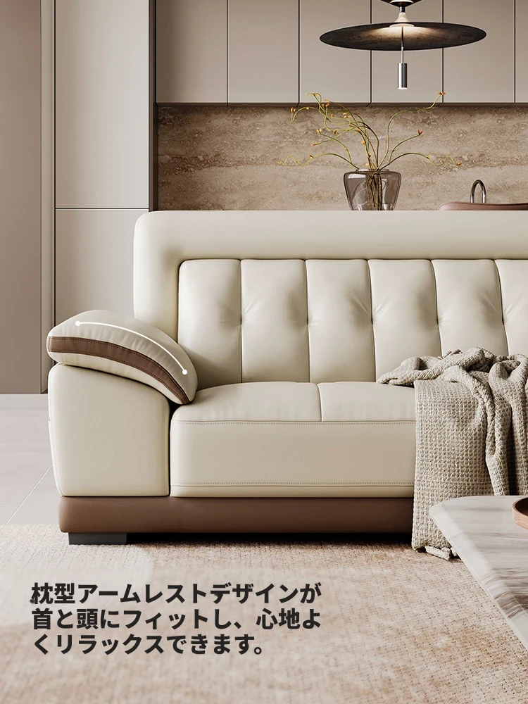 リンシのモダンシンプル本革ソファー - 広々としたリビングに最適な高級フルグレインレザー使用、スタイリッシュなデザインで快適な空間を演出。リンシ木業の高品質家具をお楽しみください。
