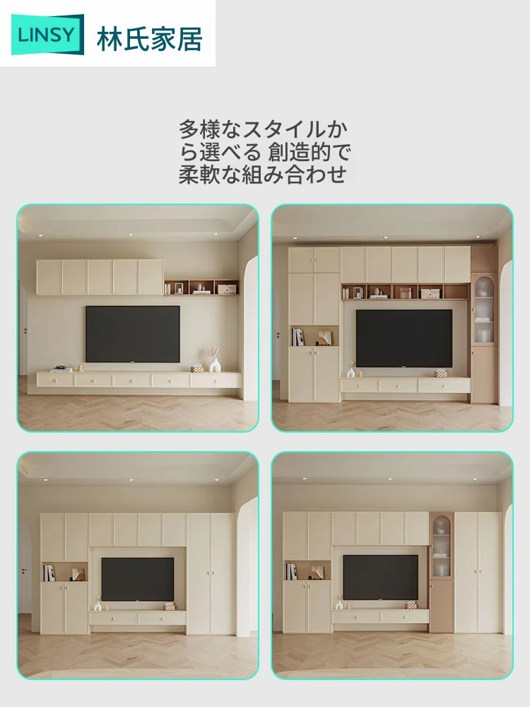リンシー木業のクリーム風サスペンデッドテレビキャビネット - 小型住宅向けの掛け式ラグジュアリー収納、トレンディなリビングルームにぴったり!TO1Mモデル