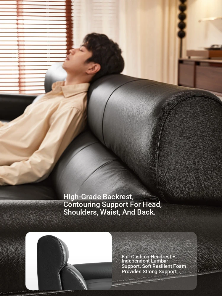 Lin's Home Elegant Black Leather Sofa - 2025 New Arrival, Authentic Top-Grain Cowhide, Perfect for Living Room - Style PS806, Featuring Luxurious Comfort and Timeless Design.