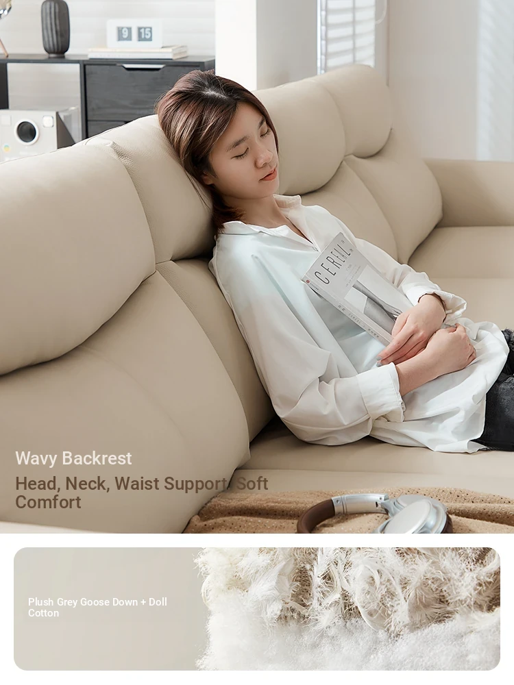 Linsy Home 2025 New Wave Design Genuine Leather Sofa for Living Room - Premium Top-Grain Cowhide Upholstery by Linsy Wood Industry (Model PS138)