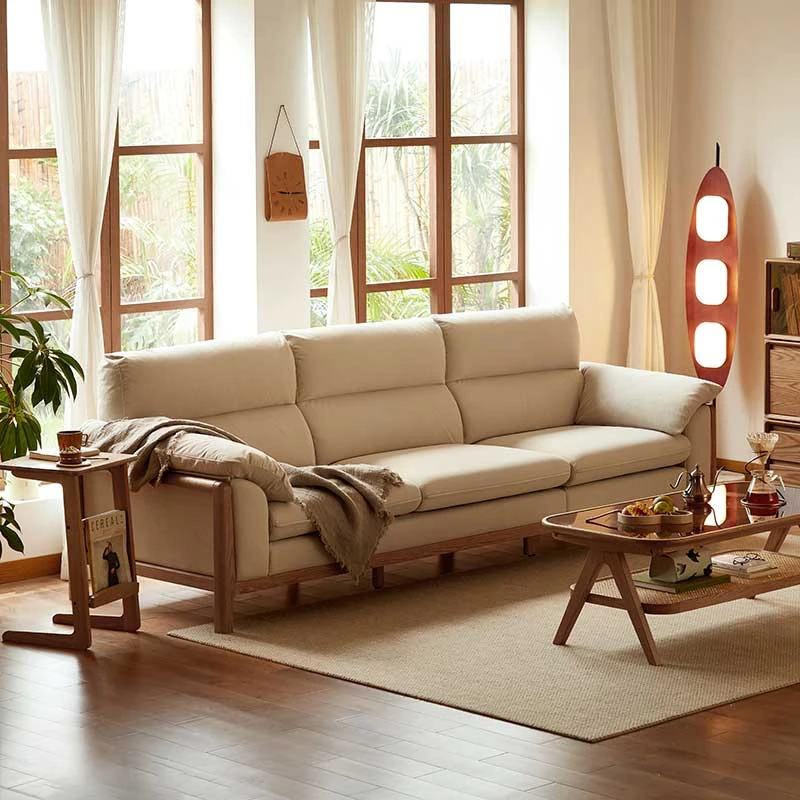 Lin's Home Oak Solid Wood Sofa - New 2025 Design, Multi-functional Fabric Three-Seater for Living Room - Directly Sourced from Foshan, Guangdong. Perfect Blend of Style and Comfort!