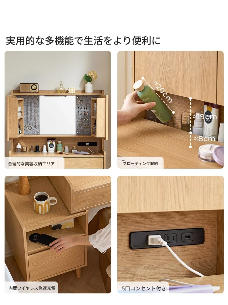 リンシー家居 機能的なドレッサー 収納キャビネット一体型 主寝室や小さな部屋に最適なベッドサイドデスク 使い勝手抜群、魅力的なデザインのリンシー木材製品
